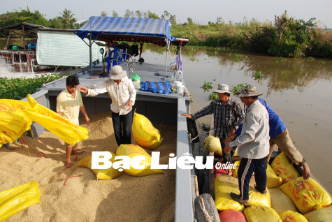Nông dân huyện Hòa Bình vận chuyển lúa bán cho thương lái. Ảnh: K.T