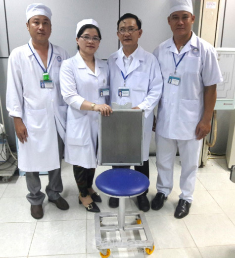 | Nhóm tác giả sáng chế và chiếc ghế chụp X-quang di động. |