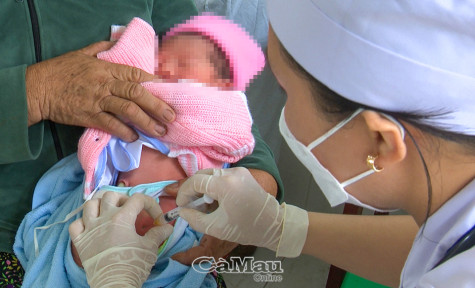 | Tiêm ngừa viêm gan cho trẻ sơ sinh tại Bệnh viện Đa khoa Cái Nước. |