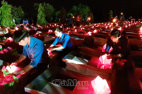 | Thắp nến tri ân những anh hùng đã hy sinh vì sự nghiệp giải phóng dân tộc của tuổi trẻ huyện Cái Nước những ngày tháng Bảy. |