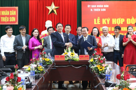 | Tập đoàn Sao Mai và UBND huyện Triệu Sơn ký kết hợp đồng đầu tư Dự án khu đô thị Minh Sơn. |
