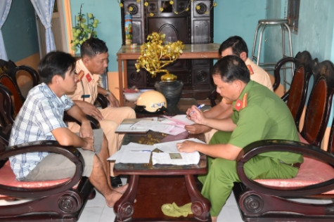 | Lực lượng chức năng ghi nhận lời khai của tài công Hà Trung Tín. |