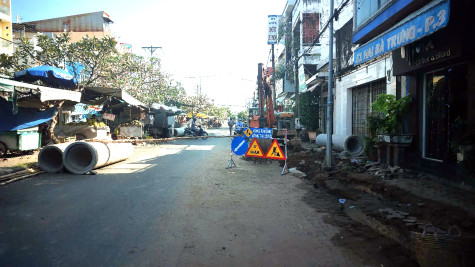 Tuyến đường Hai Bà Trưng (Phường 3, TP. Bạc Liêu) đang thi công nâng cấp đường, vỉa hè. Ảnh: K.P