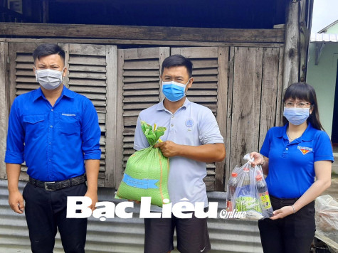 Huyện đoàn Hồng Dân thăm hỏi, hỗ trợ nhu yếu phẩm cho thanh niên bị mất việc làm do ảnh hưởng của dịch COVID-19 trên địa bàn xã Ninh Quới. Ảnh: Đ.K.C