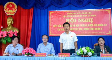 (CMO) Ngày 23/6, ông Đinh Ngọc Minh, Uỷ viên chuyên trách Uỷ ban Kinh tế của Quốc hội và ông Lê Quân, Uỷ viên Uỷ ban Văn hoá, Giáo dục của Quốc hội, có buổi tiếp xúc hơn 70 cử tri xã Viên An, huyện Ngọc Hiển.