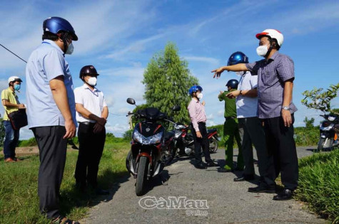 Ngay từ sáng sớm, Phó Bí thư Tỉnh ủy, Chủ tịch UBND tỉnh Huỳnh Quốc Việt đã trực tiếp xuống địa bàn các xã: Hòa Thành, Hòa Tân, Định Bình, Tắc Vân, An Xuyên, cùng đoàn khảo sát một vòng lớn trên các tuyến cửa ngõ vào TP Cà Mau, nhất là những khu vực giáp ranh, đường mòn, lối mở để kiểm tra việc kiểm soát người và phương tiện ra vào tại nơi đây.