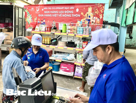 (BL-LD) Sáng 24/1, Siêu thị Co.opmart Bạc Liêu tổ chức “Đưa hàng Việt về nông thôn” ở xã Phong Thạnh Đông (TX. Giá Rai) - ảnh. Trong chuyến bán hàng lưu động này, Co.opmart Bạc Liêu đã giới thiệu với người tiêu dùng nhiều sản phẩm hàng hóa chất lượng cao gắn với các chương trình khuyến mãi hấp dẫn cho bà con vùng sâu, vùng xa. Qua đó, giúp người tiêu dùng vùng nông thôn tiếp cận hàng Việt Nam chất lượng cao với giá cả hợp lý.