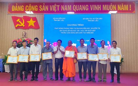Sở Dân tộc và Tôn giáo cùng Hội Khuyến học tỉnh phát động phong trào học tập suốt đời tại huyện Phước Long, ngày 19/3/2025. Ảnh: N.Q