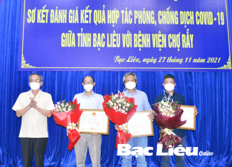 Dịp này, UBND tỉnh đã tặng bằng khen cho 5 tập thể đã có nhiều đóng góp tích cực cho công tác phòng, chống dịch bệnh COVID-19 trên địa bàn tỉnh Bạc Liêu, gồm: Nhóm những người yêu Sài Gòn, Nhóm Thái Thịnh and Friends, Công ty Cổ phần ô tô Trường Hải, Công ty cổ phần Đại Nam và Công ty TNHH thiết bị y tế Phương Đông.