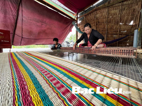 Nghề dệt chiếu truyền thống ở thị trấn Ngan Dừa (huyện Hồng Dân). Ảnh: C.L