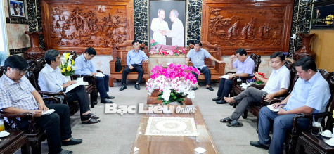 Sau khi khảo sát thực tế, đoàn có buổi làm việc với UBND TX. Giá Rai bàn các giải pháp phòng chống sạt lở.