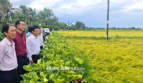 Theo đó, đoàn đã đến kiểm tra thực tế ở thị trấn Ngan Dừa (huyện Hồng Dân) và xã Vĩnh Phú Tây, Vĩnh Phú Đông (huyện Phước Long). Theo Phòng NN&PTNT huyện Hồng Dân, nông dân trong huyện đã thu hoạch cơ bản vụ lúa hè thu, chỉ còn khoảng 550ha tập trung ở thị trấn Ngan Dừa và xã Ninh Hòa chưa thu hoạch. Một số diện tích lúa hè thu do ảnh hưởng bão số 3 gây mưa liên tục nên bị đổ ngã chòm lõm. Trong khi đó, huyện Phước Long còn hơn 3.500/13.700ha lúa hè thu chưa thu hoạch, chủ yếu tập trung ở 2 xã Vĩnh Thanh và Vĩnh Phú Đông. Nhờ hệ thống ô đê bao khép kín gắn với trạm bơm nên các trà lúa hè thu trên địa bàn huyện Phước Long không bị đổ ngã. Đối với vụ lúa trên đất tôm, tranh thủ trời mưa nông dân 2 huyện Phước Long và Hồng Dân đã bắt tay vào rửa mặn được 2 đến 3 lần và chuẩn bị xuống giống. Dự kiến đến trung tuần tháng 9 sẽ xuống giống vụ lúa trên đất tôm theo đúng lịch thời vụ do ngành Nông nghiệp khuyến cáo.