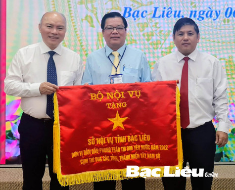 Sở Nội vụ tỉnh Bạc Liêu nhận cờ thi đua của Cụm thi đua các tỉnh, thành miền Tây Nam Bộ. Ảnh: K.K