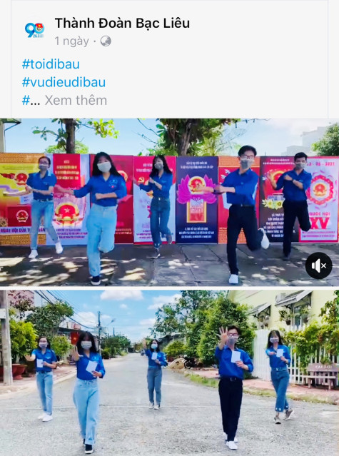 Đoàn Thanh niên TP. Bạc Liêu thực hiện vũ điệu “Cùng nhau đi bầu” đăng trên mạng xã hội. Ảnh chụp từ màn hình Facebook: H.L