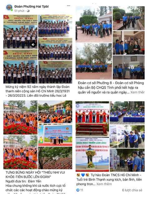 Nhiều bài đăng về các hoạt động của thanh niên trong tháng 3 được chia sẻ. Nguồn: Facebook