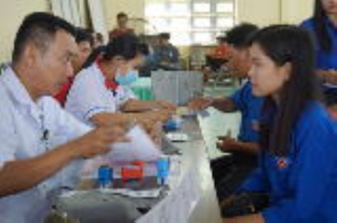 Các đoàn viên thanh niên làm thủ tục hiến máu.