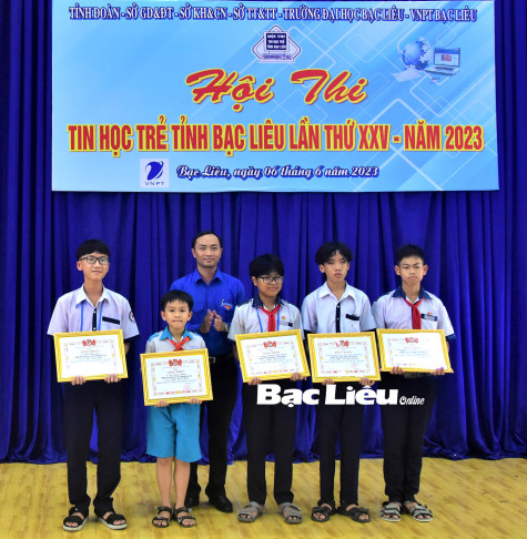 Kết thúc Hội thi Tin học trẻ tỉnh Bạc Liêu lần thứ 25 - năm 2023, Ban tổ chức đã trao 4 giải Nhất, 6 giải Nhì, 3 giải Ba và 13 giải Khuyến khích cho các TS xuất sắc ở 4 bảng. Đồng thời, còn trao giải Nhất toàn đoàn cho đơn vị TP. Bạc Liêu, giải Nhì cho huyện Đông Hải và giải Ba cho huyện Hòa Bình. Ngoài ra, 21 gương mặt xuất sắc nhất tại hội thi lần này đã được “chọn mặt gửi vàng” để tham dự vòng thi khu vực, dự kiến sẽ diễn ra vào ngày 25/6/2023 tại TP. Hồ Chí Minh.