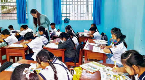 Do mức đãi ngộ cho giáo viên còn thấp nên nhiều sinh viên chưa thiết tha với ngành sư phạm. (Ảnh minh hoạ, chụp tại Trường Tiểu học Trí Phải, xã Trí Phải, huyện Thới Bình, tháng 3/2023).