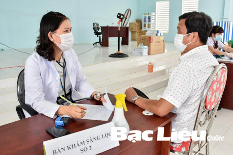 Nhân viên y tế Trung tâm Kiểm soát bệnh tật tỉnh tư vấn (ảnh trên) và tiêm vắc-xin mũi 4 cho người dân. Ảnh: C.K