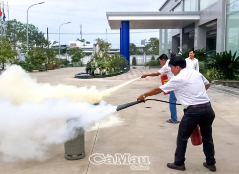 | Công ty Ðiện lực Cà Mau thường xuyên kết hợp với các cơ quan chức năng tổ chức diễn tập PCCC để không ngừng nâng cao kỹ năng chữa cháy cho công nhân viên ngành điện. |