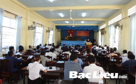 Hội nghị phổ biến các quy định của pháp luật về đất đai tại xã Vĩnh Thanh (huyện Phước Long). Ảnh: C.L