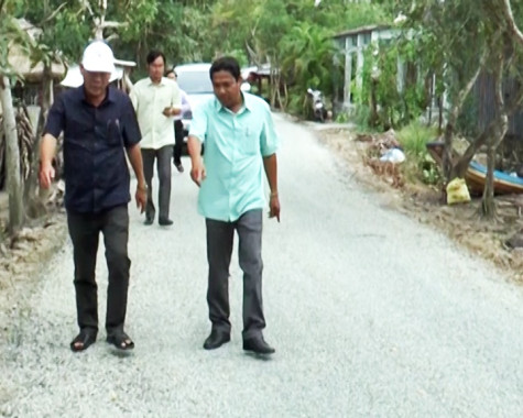 | Phó chủ tịch UBND huyện Đầm Dơi Trần Anh Chót (bên phải)đang kiểm tra lộ. |