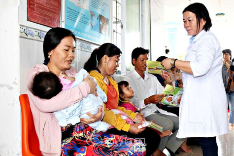 | Nhân viên y tế tư vấn nuôi con bằng sữa mẹ và phòng một số bệnh thường gặp ở trẻ nhỏ. |