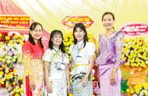 Cô giáo Mã Mỹ Phương (thứ hai từ trái sang) dự Ðại hội Ðại biểu các dân tộc thiểu số tỉnh Bạc Liêu lần thứ IV - năm 2024.