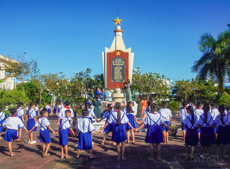 Giáo viên, học sinh Trường Tiểu học 1, Xã Phan Ngọc Hiển viếng Tượng đài 10 anh hùng liệt sĩ Khởi nghĩa Hòn Khoai.