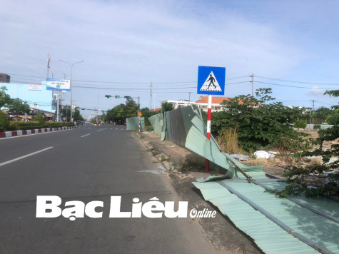 Mới đây, một số người dân phản ánh họ suýt gặp tai nạn khi những tấm tôn dùng để che chắn khu đất trống gần giao lộ đường Trần Huỳnh - Lê Duẩn (Phường 1, TP. Bạc Liêu - trước đây là chợ Trần Huỳnh) bất ngờ đổ ra đường (ảnh).