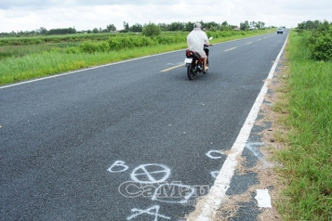Hiện trường vụ tai nạn. Tai nạn xảy ra khi anh trung dừng xe ở lề đường.