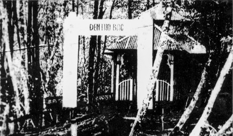 | Năm 1969, quân và dân Nhà Hội xây dựng Đền thờ Bác Hồ trong khu căn cứ. |