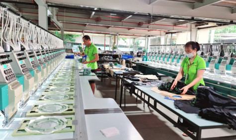 Hoạt động sản xuất tại Công ty Cổ phần Sản xuất hàng thể thao Tân Đệ, Thái Bình. Ảnh: TRỊNH DUẨN