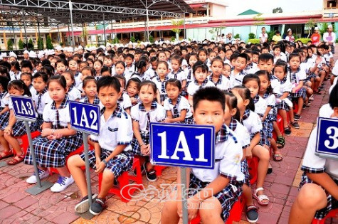 Đông đảo học sinh trường Tiểu học Phan Ngọc Hiển tham gia.