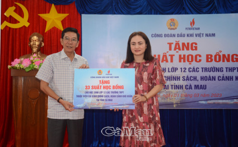 (CMO) Sáng ngày 1/3, Sở Giáo dục và Đào tạo phối hợp với Công đoàn Dầu khí Việt Nam tổ chức lễ tặng học bổng cho các em học sinh thuộc diện gia đình chính sách, hoàn cảnh khó khăn trên địa bàn tỉnh.