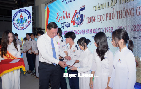 Chiều 19/11, Trường THPT Giá Rai (TX. Giá Rai) đã tổ chức Họp mặt kỷ niệm 40 năm Ngày Nhà giáo Việt Nam (20/11/1982 - 20/11/2022) và 45 năm Ngày thành lập Trường THPT Giá Rai (15/10/1977 - 15/10/2022). Tham dự buổi họp mặt có các đồng chí lãnh đạo TX. Giá Rai, lãnh đạo Sở GD-KH&CN, hơn 2.000 cán bộ, giáo viên qua các thời kỳ, cựu học sinh và toàn thể học sinh trường.