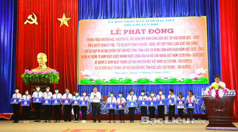 Hội Khuyến học tỉnh Bạc Liêu tặng xe đạp cho học sinh năm học 2023 - 2024.