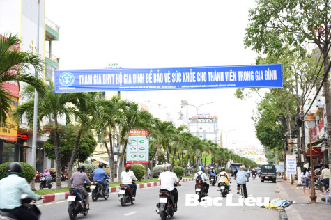 Băng-rôn tuyên truyền về bảo hiểm y tế trên địa bàn TP. Bạc Liêu. Ảnh: K.T