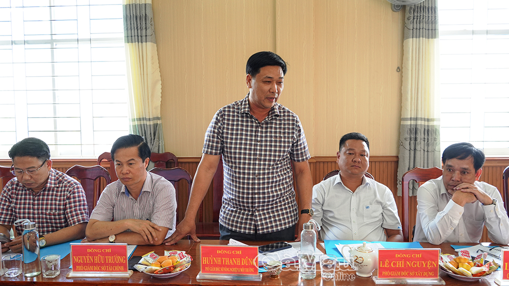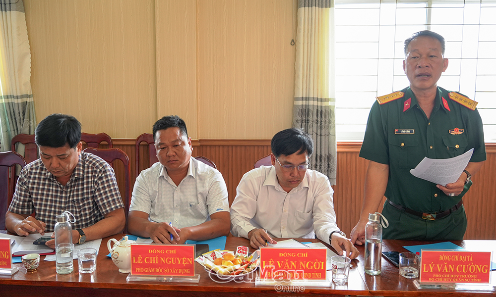 Ông Huỳnh Thanh Dũng, Phó Giám đốc Sở Nông nghiệp và Môi trường, thông tin với xã Phú Mỹ về quỹ đất công để sắp xếp trụ sở làm việc cho Ban Chỉ huy Quân sự và Công an xã.