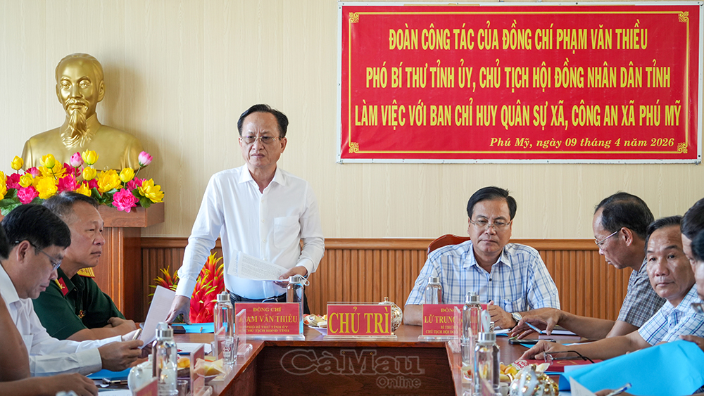 Báo Cà Mau Ngày 9/4, Đoàn công tác số 2 do đồng chí Phạm Văn Thiều, Phó Bí thư Tỉnh uỷ, Chủ tịch HĐND tỉnh Cà Mau làm trưởng đoàn đã đến khảo sát trụ sở Ban Chỉ huy Quân sự và Công an xã Phú Mỹ.