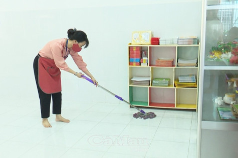 | Giáo viên các trường mầm non thường xuyên vệ sinh lớp học để phòng bệnh cho trẻ. |