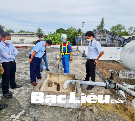 Đoàn kiểm tra liên ngành 389 tỉnh kiểm tra tại kho trung chuyển xăng dầu của Chi nhánh Công ty Cổ phần Dầu khí Mê Kông tại Bạc Liêu. Ảnh: C.L