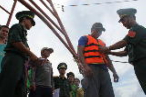 | Các trạm biên phòng đứng chân trên địa bàn các xã, thị trấn của huyện Ngọc Hiển kiểm tra, hướng dẫn ngư dân mặc áo phao đảm bảo an toàn trước khi ra khơi đánh bắt. |