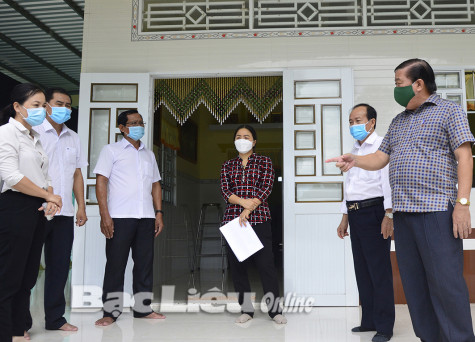 Đoàn cán bộ của UBND TX. Giá Rai khảo sát hộ dân tại ấp 5 (xã Phong Tân) để thí điểm cách ly tại nhà đối với người về từ vùng dịch. Ảnh: C.K
