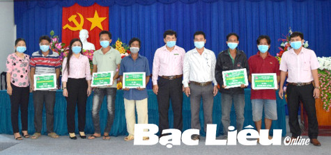 Ngân hàng Chính sách xã hội tỉnh trao vốn hỗ trợ các hộ nghèo, cận nghèo xã Vĩnh Hậu A (huyện Hòa Bình). Ảnh T.Q