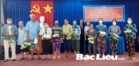 Người khuyết tật tham dự Hội nghị truyền thông về TGPL tại Phường 8 (TP. Bạc Liêu) được nhận quà của chương trình. Ảnh: C.P.Đ