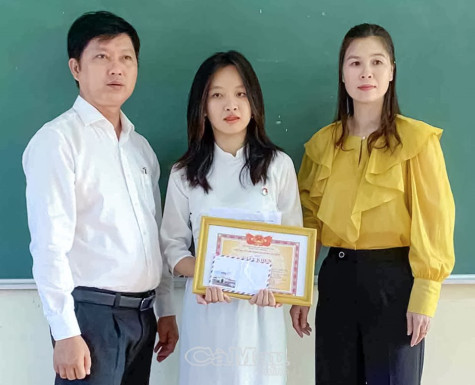 (CMO) Chủ tịch UBND huyện Cái Nước vừa tặng giấy khen đột xuất cho em Châu Như Đang, học sinh lớp 12A15 Trường THPT Cái Nước vì có thành tích nhặt của rơi trả lại tài sản cho người bị mất.