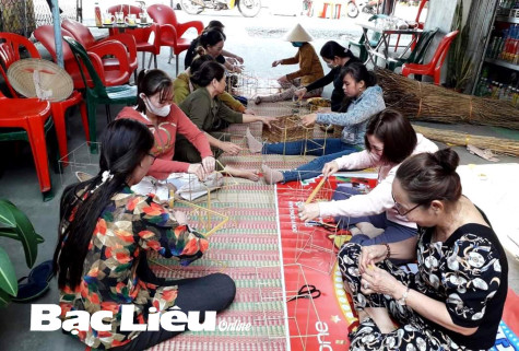 Lao động nữ TX. Giá Rai đan sản phẩm thủ công mỹ nghệ từ cây năn tượng. Ảnh: T.Q