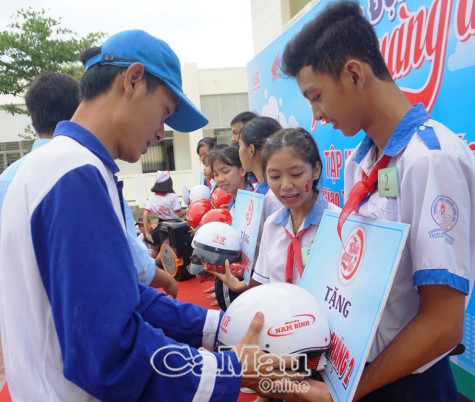 Việc tặng mũ bảo hiểm nhằm tuyên truyền ý thức chấp hành pháp luật về ATGT tất cả học sinh, sinh viên
