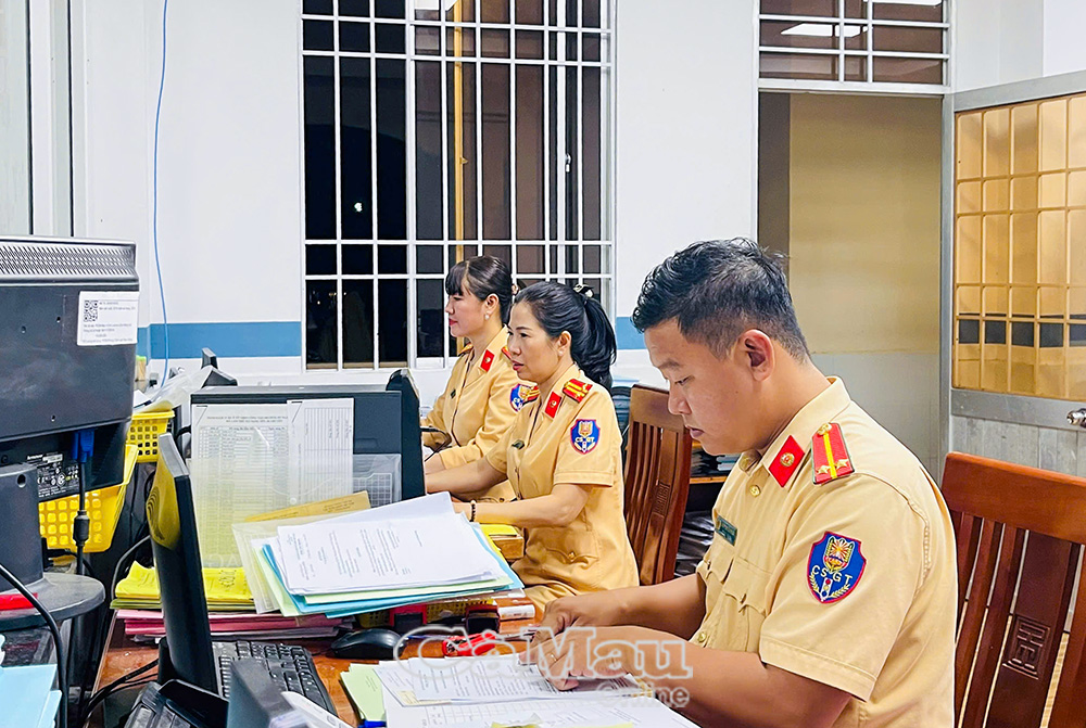 Phòng CSGT “tranh thủ làm đêm” làm sạch dữ liệu đăng ký phương tiện và phê duyệt hồ sơ theo thẩm quyền.